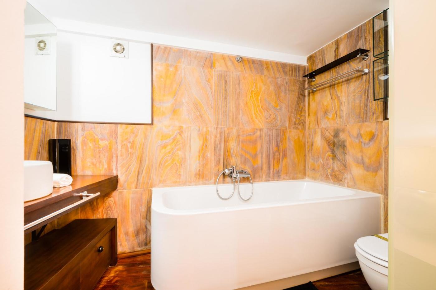 Two-Bedroom Apartment. Boasting a private entrance, this air-conditioned apartment includes 1 living room, 2 separate bedrooms and 2 bathrooms with a bath and a shower. In the well-equipped kitchen, guests will find a stovetop, a refrigerator, a dishwasher and kitchenware. The spacious apartment offers a washing machine, a tea and coffee maker, a seating area, a flat-screen TV with satellite channels, as well as ancourtyard view. The unit has 2 beds.